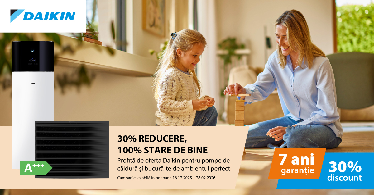 Campania se aplică pentru sistemele complete (unitate interioară + unitate exterioară) din gamele Daikin Altherma hidrosplit 3 H MT și 3 H HT.